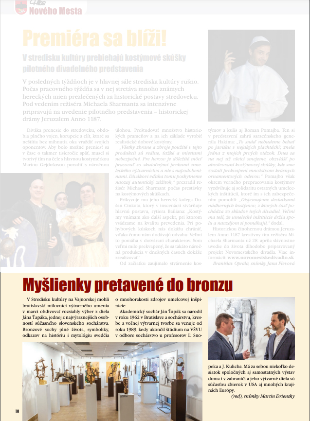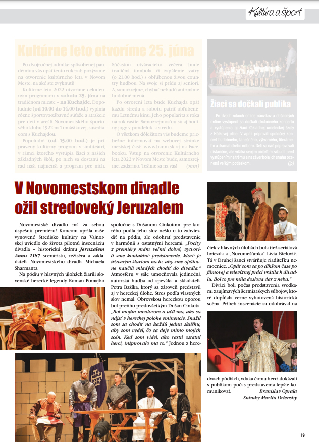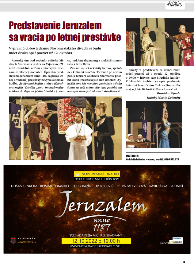 V predpremiére pilotnej inscenácie Novomestského Divadla ožil stredoveký Jeruzalem (3.5.2022)